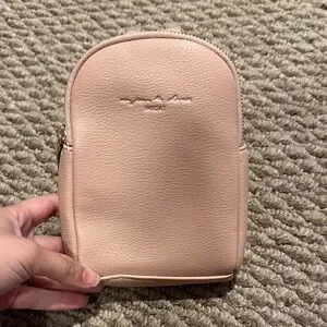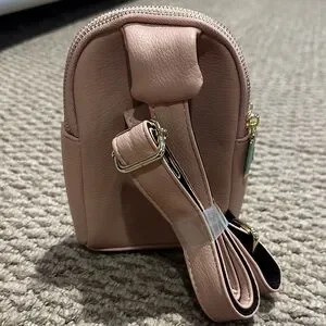 Stylish pink mini backpack with zipper closure. Perfect for casual outings.