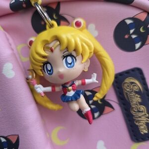 Charming mini bag in pink, featuring playful cat and moon designs. Perfect for Sailor Moon fans! Nearly new only used once or twice.