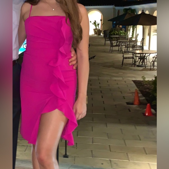 Purchased from Lulu’s. Hot pink mini dress with slit. Has adjustable straps. Only worn once. Size M but fits 6-8.