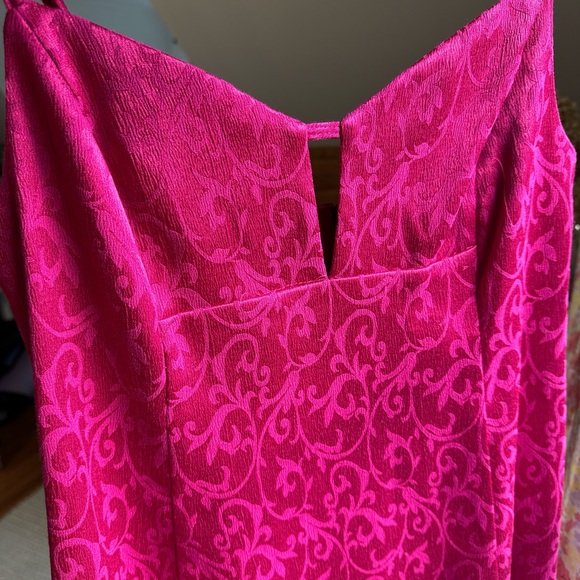 Vibrant pink mini dress with elegant pattern. Perfect for a night out. Pink mini dress with adjustable straps #minidress