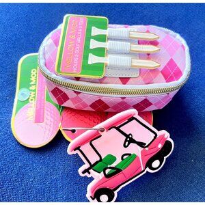 Pink Mini GOLF Pouch Bag Set Tag 3 Balls +Tees Golfer Gift Mellow & Mod Sports