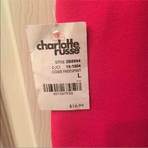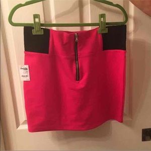 Never worn tight pink mini skirt. Elastic black sides and zipper in back.