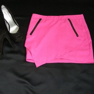 15"across waist 15"full length Size small Asymmetrical style There are 2 black zippers in the front just for show.Hidden zipper in the back Fun and flirty Wear with high heels or boots .Ladies show those legs LOL Care tags inside garment LAST Chance BEFORE I PULL FROM CLOSET