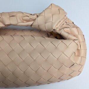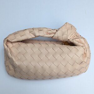 Pink Mini Woven Bag – Bottega Style, Split Leather, Chic Knot Handle NEW