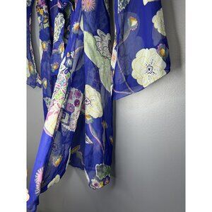 Pink Mode Kimono Tunic Top Womens 1X Blue Floral Sheer Tie Back Cover Up Boho