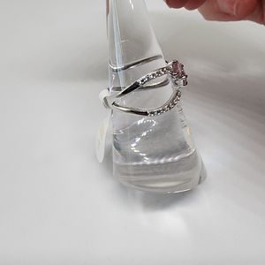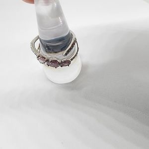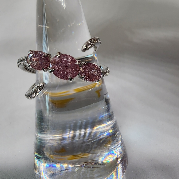 Lab created Pink Moonstone on solid sterling silver and triple rhodium plated. with cubic zirconia stones. Size 7