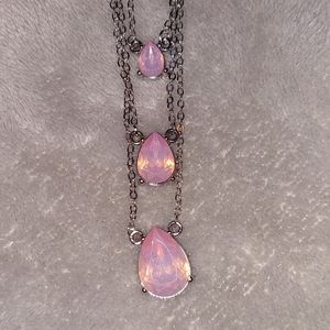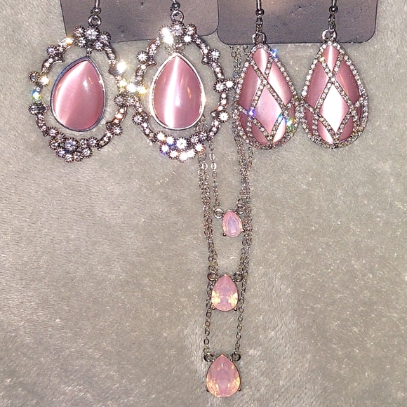 * 1 PINK RHINESTONE NECKLACE WITH MATCHING EARRINGS