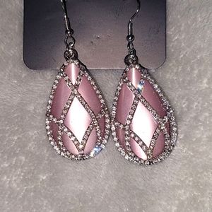 * 1 PAIR OF PINK MOONSTONE EARRINGS WITH WHITE RHINETONES