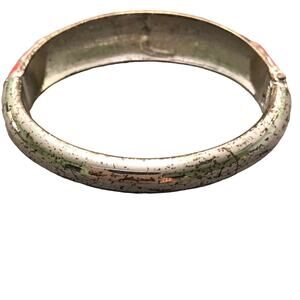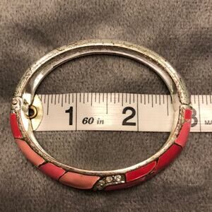 Silver tone bracelet with pink mosaics and tiny rhinestones