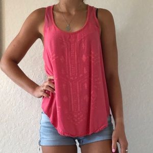 This top is amazing for summer! It’s a pink color with some tribal designs on the front and mesh like straps! It’s thinner and looks good for a ton of occasions!