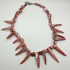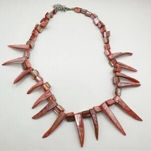 Pink Mother of Pearl Spike Shard Shell Bib Statement Necklace Beach Resort Beach