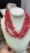 This stunning pink necklace features 3 strands of coral beads, creating a vibrant and eye-catching accessory. Designed to sit elegantly at the collar-bone, it adds a touch of sophistication to any outfit. Lobster clasp.