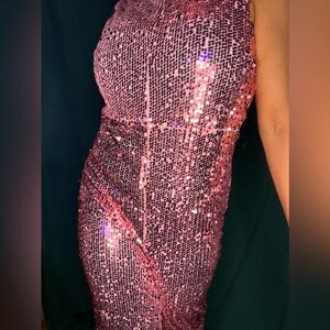 Pink NastyGal Sequined High Neck Jumpsuit. Sz US10.
