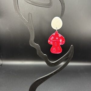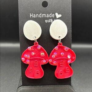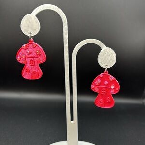 Adorable handmade pink neon mushroom earrings. Add a touch of whimsy to any outfit.