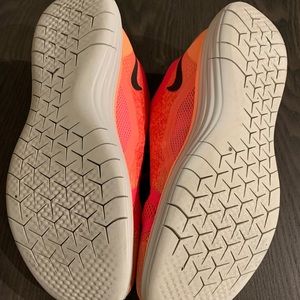 Pink & Orange Nike Shoes with white sole. Super breathable material, wore them to gym and Zumba a few times. Logo says: NIKE RN Distance 2. 80$ back then, worn very few times so still in good condition!