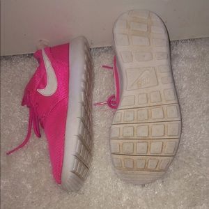 Gently used little girls pink nikes with white trim. Still in great shape!