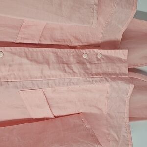 Linda Lundstrom Ltd 1997 Vintage Lightweight Nylon Leisure Suit with Super Oversized Jacket including Large Pockets with One in the Back, Hood & Front Snap Button Closure. (Zipper needs unstuck). Pull-on Pants with Elastic Waist, Huge Pockets & Ribbed Hem. Feminine Soft Pink Color. Ready for Fun!