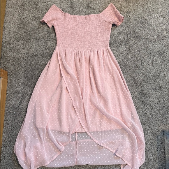 Charming pink off-shoulder dress perfect for any occasion. Features a delicate design with a comfortable fit.