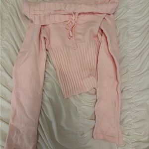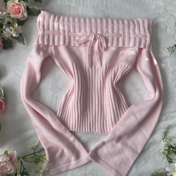 Stay cozy and stylish with this pink off-shoulder ribbed sweater. Perfect for any casual outing.