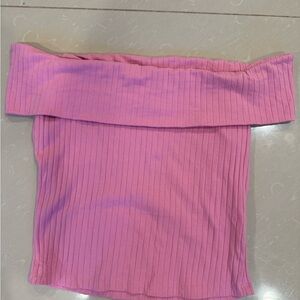 Stylish pink off-shoulder ribbed top. Perfect for casual outings.