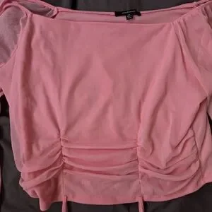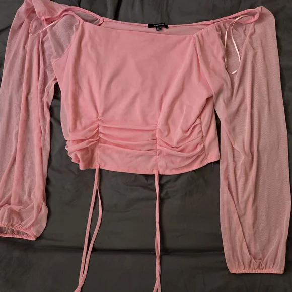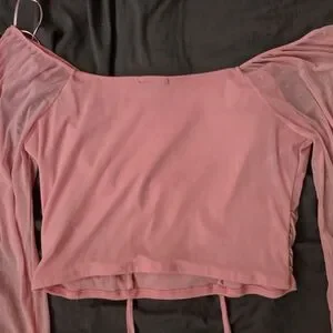 Elevate your style with this chic pink off-shoulder top. Featuring elegant ruched detailing and long sleeves, it's perfect for any occasion.