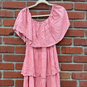 Embrace elegance with this charming pink off-shoulder ruffle dress. Perfect for any occasion, it offers a flattering fit and a stylish look.