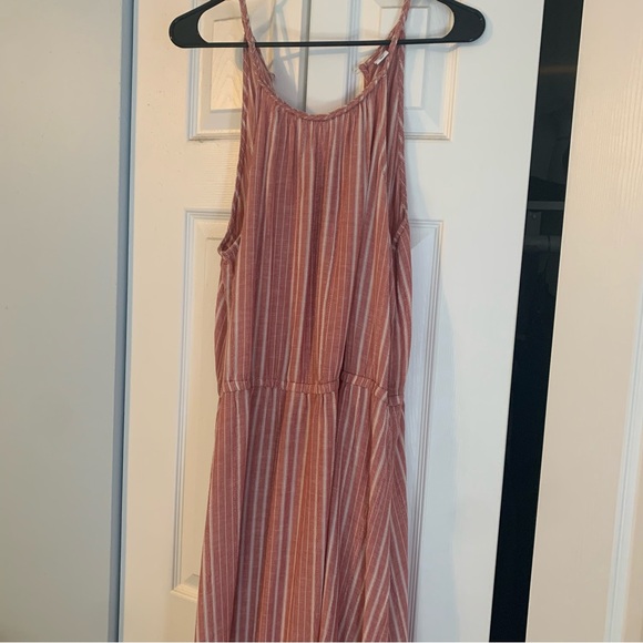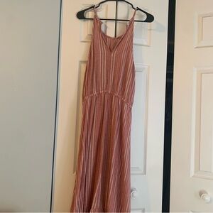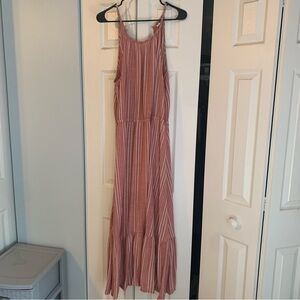 Pink and white vertical striped maxi dress Thin braided straps Gently used Old Navy size L Smoke free home