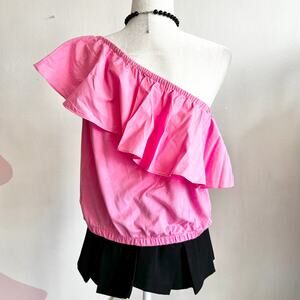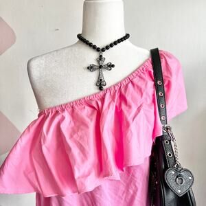 Pink One Shoulder Ruffle Top, Coquette, Y2K, Soft Girl,‎ Cottagecore, Medium