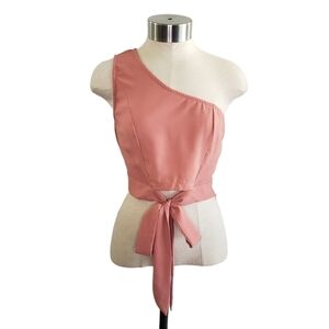 Pink One Shoulder Tied Crop Top- Size XS- Shein