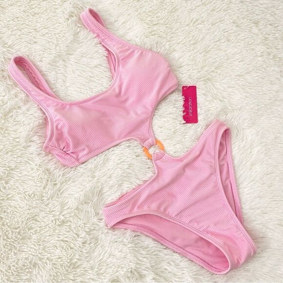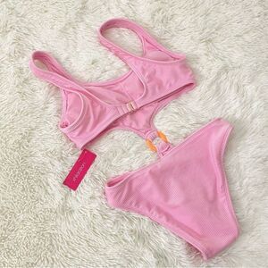 Brand new with tags! Size small Light pink one piece with cutouts and fun detailing.