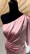 pink one-shoulder dress is perfect for any special occasion. The satin fabric drapes beautifully, offering a sophisticated and stylish look.
