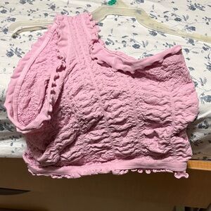 Chic pink one-shoulder top with ruffle details. Perfect for a stylish look. Super stretchy, super soft! Fits S-Xl