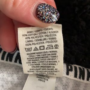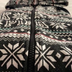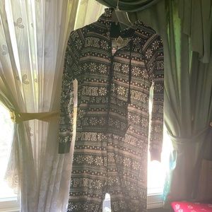 Pink brand onesie — got this years ago around Christmas time. Black onesie with Pink & snowflake print all over ! Comfy for winter — small; gently worn