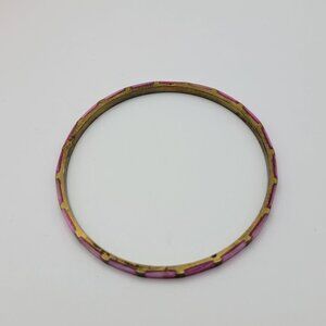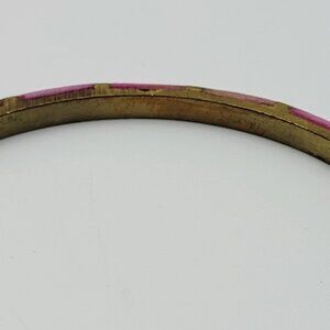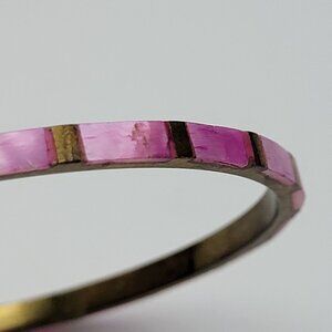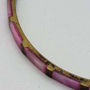Pink Opalescent Stone Inlay Brass Bangle Bracelet 8.5 Inch Dancer