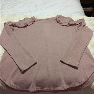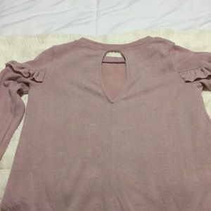 Pink Open BackRuffled Top. Such a pretty pink. Ruffles on the shoulders, small open back. Brand new. Never worn. Came from a Boutique. Size large.