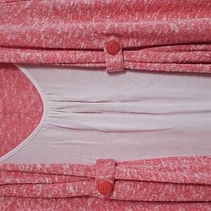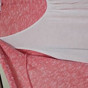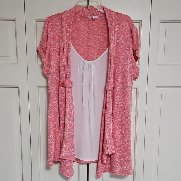 Stylish pink open-front cardigan with attached tank. Soft and cozy.