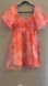 Pink and orange floral printed dress. Fully lined. Smocked top. Bubble sleeves. Fit and flare silhouette.