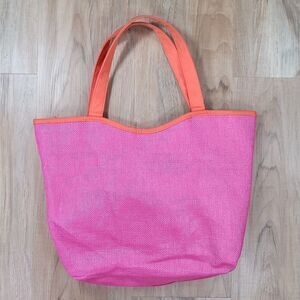 💜Pink, Orange, & Teal Tropical Floral Print Reversible Tote