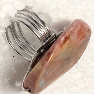 Pink Oval Ring Adjustable Band Handmade Semi Precious Ring