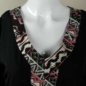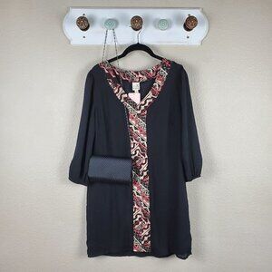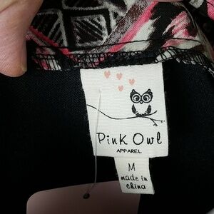 Pink Owl Black Shift Bohemian Casual Dress with Geometric Trim. NWT.