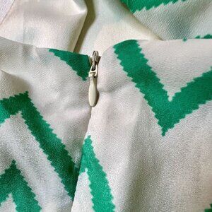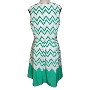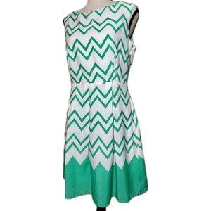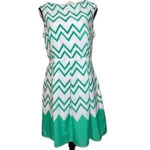 Pink Owl Chevron Retro Mod Style Ivory & Green Pleated Flair Dress NWOT In Size M