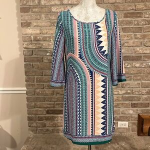 🎉Pink Owl Dress Embroidered Colorful Floral Large Bell Sleeves Sz S