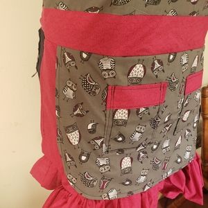 Pink Owl Ruffled Kitchen Apron
