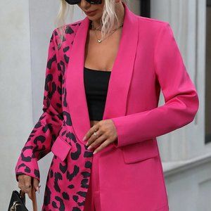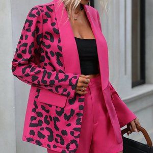 Pink PReppy Womens Leopard Print Shawl Collar Blazer & Shorts