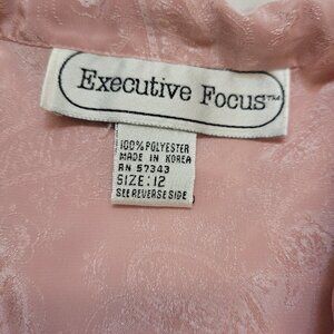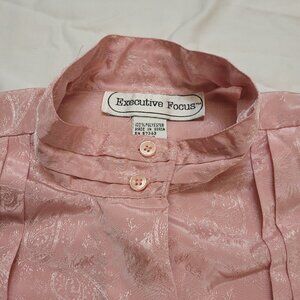 Pink Paisley Blouse Collar Pleated Long Sleeve Vintage Executive Focus READ