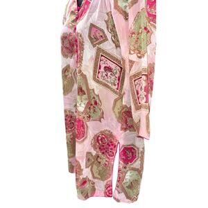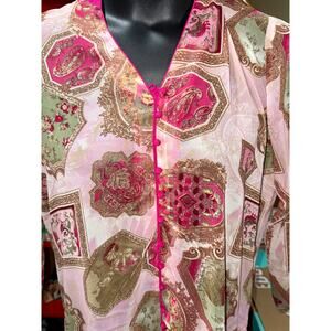 Pink Paisley Floral Print Tunic Quarter Sleeve Semi-Sheer Lightweight Summer XL