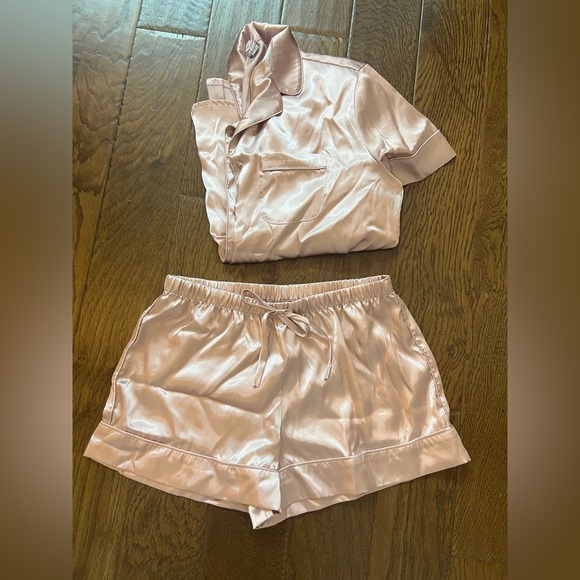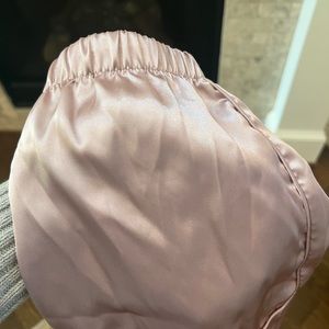 Polyester material, but super soft and look silky. Worn once for a few hours.