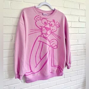 Cozy pink sweatshirt featuring a bold Pink Panther graphic. Perfect for casual wear.