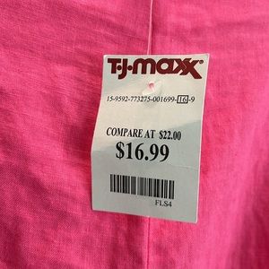 Pink pants size small from TJMaxx. Tag still on and never worn. Flowy pants with high slits on each side and comfortable elastic waistband. Has pockets.