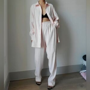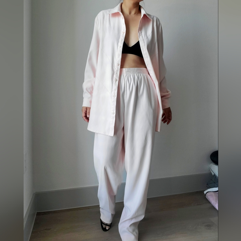Y2k Grannycore Soft pale pink shirt and pants set. Pants has elasticwaist eith relax fit. Soft touch polyester + spandex. Label size 14.